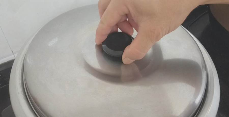 第六步:魚鋪好材料后,準備一個鍋,鍋中燒開水放入一個蒸架,然后把魚端進去放在蒸架上,蓋上鍋蓋蒸15分鐘。